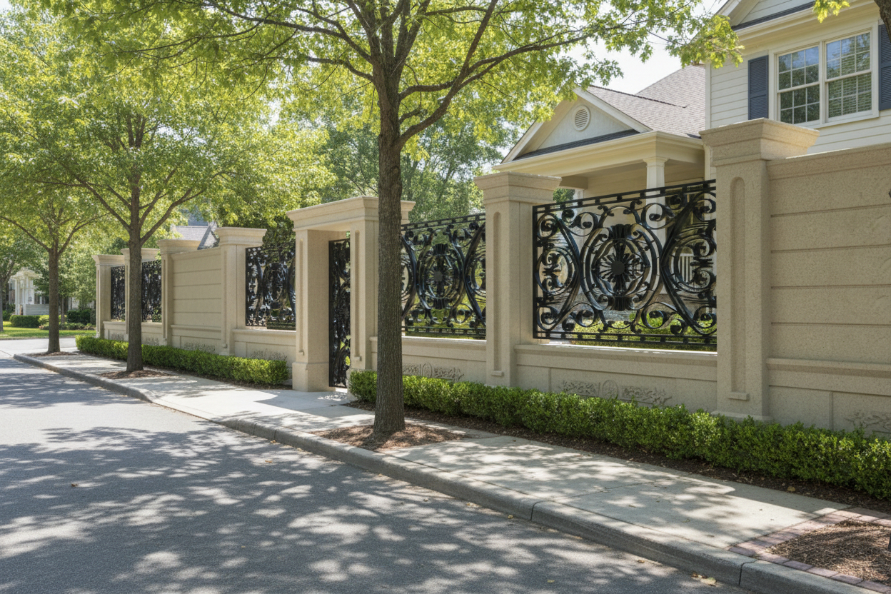 Element arhitectural tip panou de grindă pentru gard, realizat din piatră naturală gata tăiată și prelucrată în formă pentru a fi montată rapid și cu ușurință. Panoul acoperă o latură la gardului.