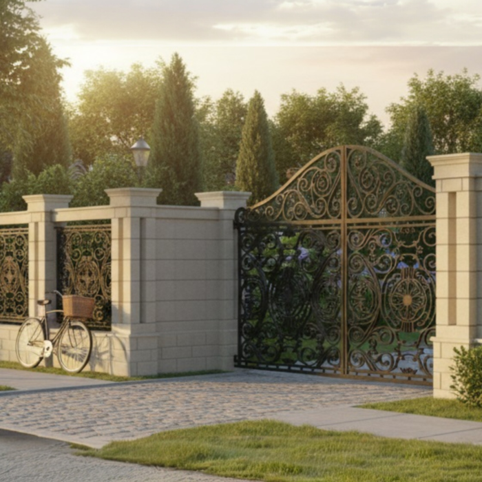 Element arhitectural stâlp de colț din piatră naturală pentru gard compus din piese tăiate și prelucrate în formă pentru a fi montate rapid și cu ușurință. Colecția OXFORD